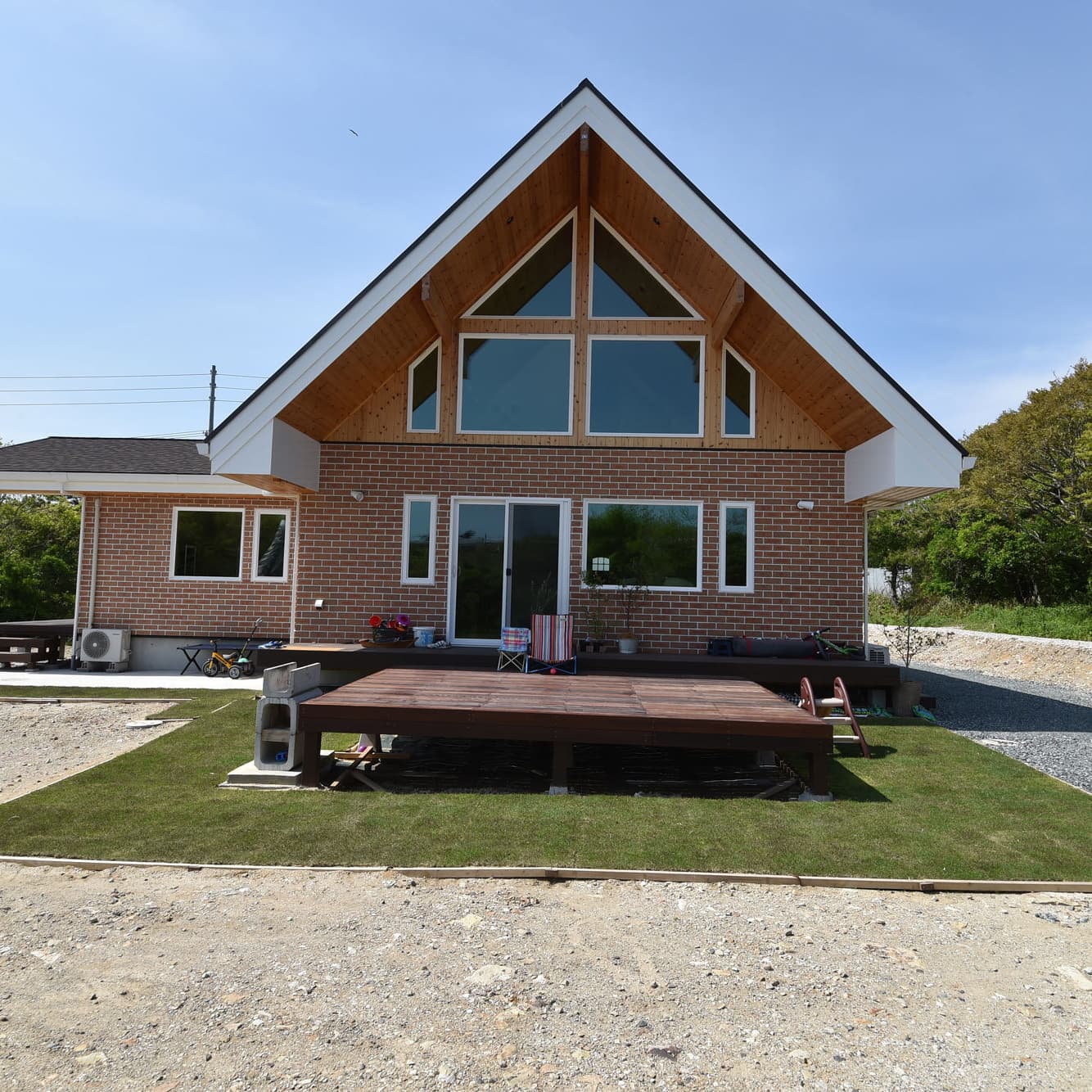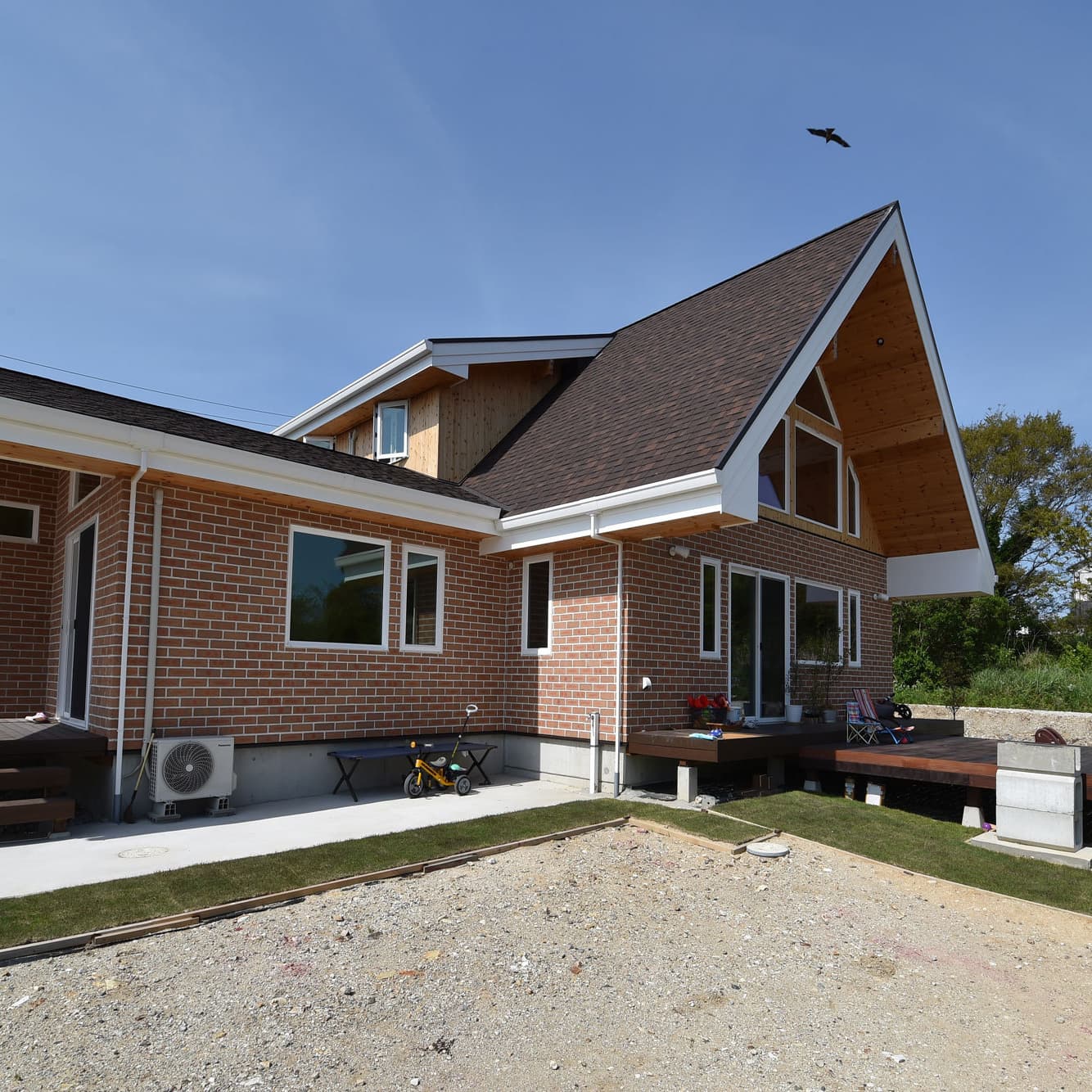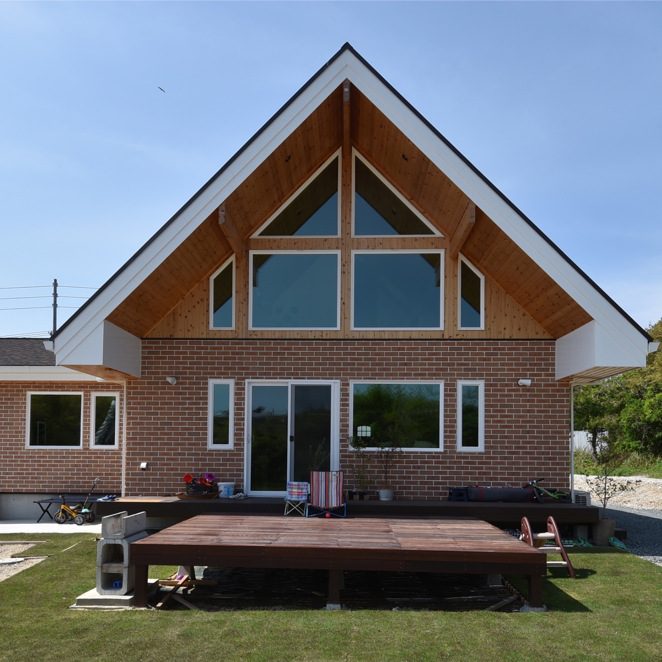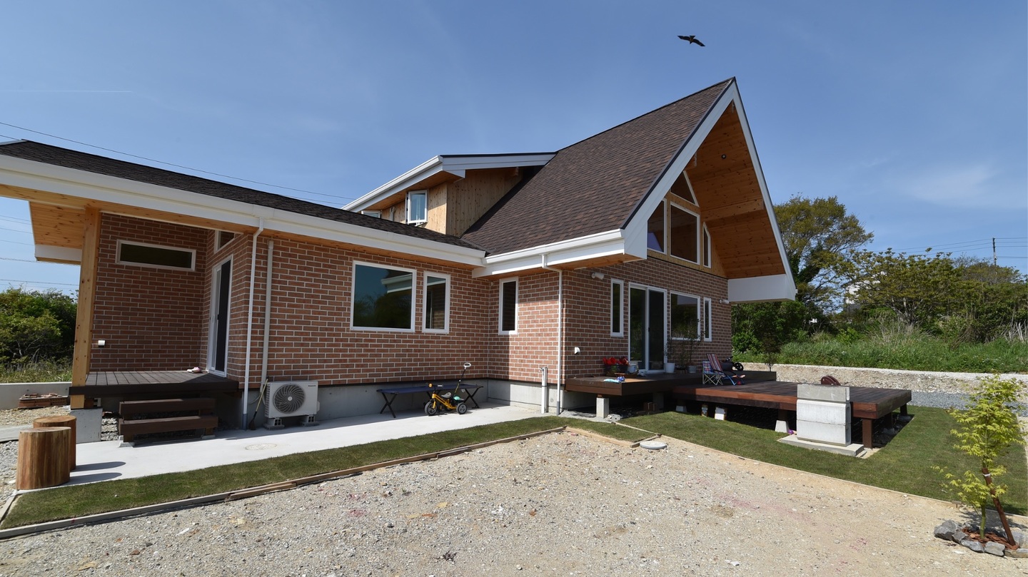 知多半島の先端から船で20分ほどに位置する日間賀島、その島の小高い丘の上に煉瓦の外壁が印象的な家を作りました。海水浴で知られる日間賀島ですがその冬は意外と厳しい気候です。強く冷たい風が毎日のように吹くのが特徴です。施主様からの要望は快適な木の家です。弊社は、島の景色と暖かく開放的な夏、そして厳しい冬を楽しむための家を作ることになりました。この海を見下ろす家は、大きな窓を組み合わせ、すべてに三重ガラスをはめ込んであります。壁はどっしり重厚感がある煉瓦を用いました。高断熱高気密の構造体にヒートポンプを使った床暖房で全館暖房を実現してあります。ちなみに床暖房でありながら無垢フローリングを可能にしたのは弊社の経験の積み重ねです。