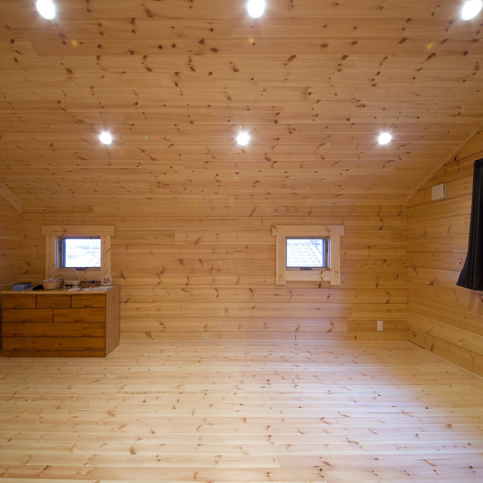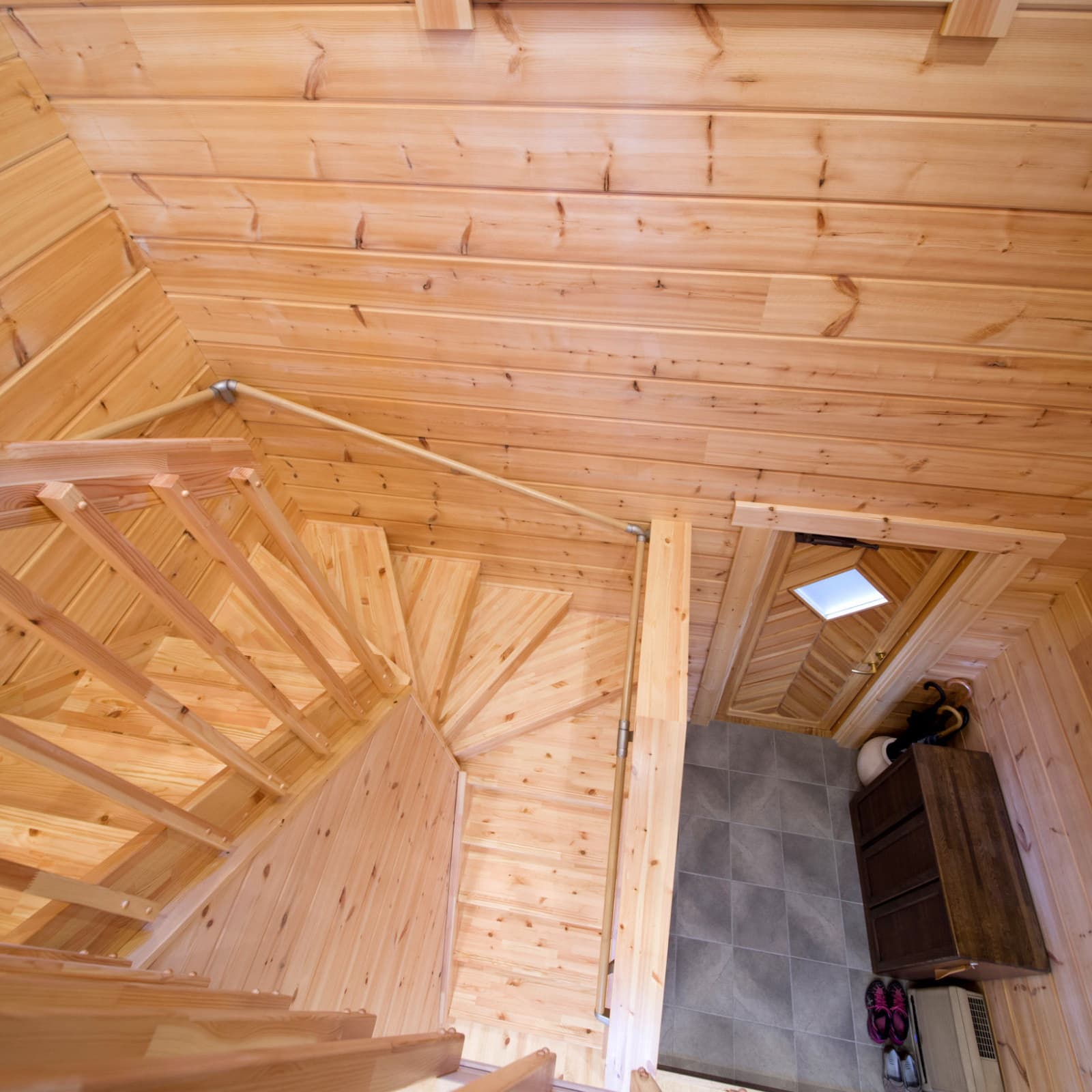 出来上がった基本設計は1階にLDK、水まわり、夫婦の寝室、2階にお客様用の寝室と収納室を持つ31坪のログハウス。ご夫婦の生活は1階のみで完結、平屋感覚で暮らせるバリアフリーなログハウスです。
