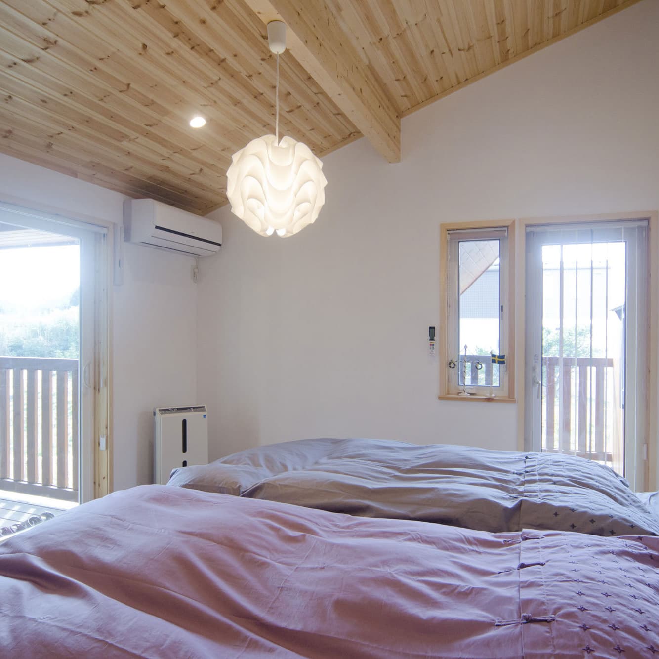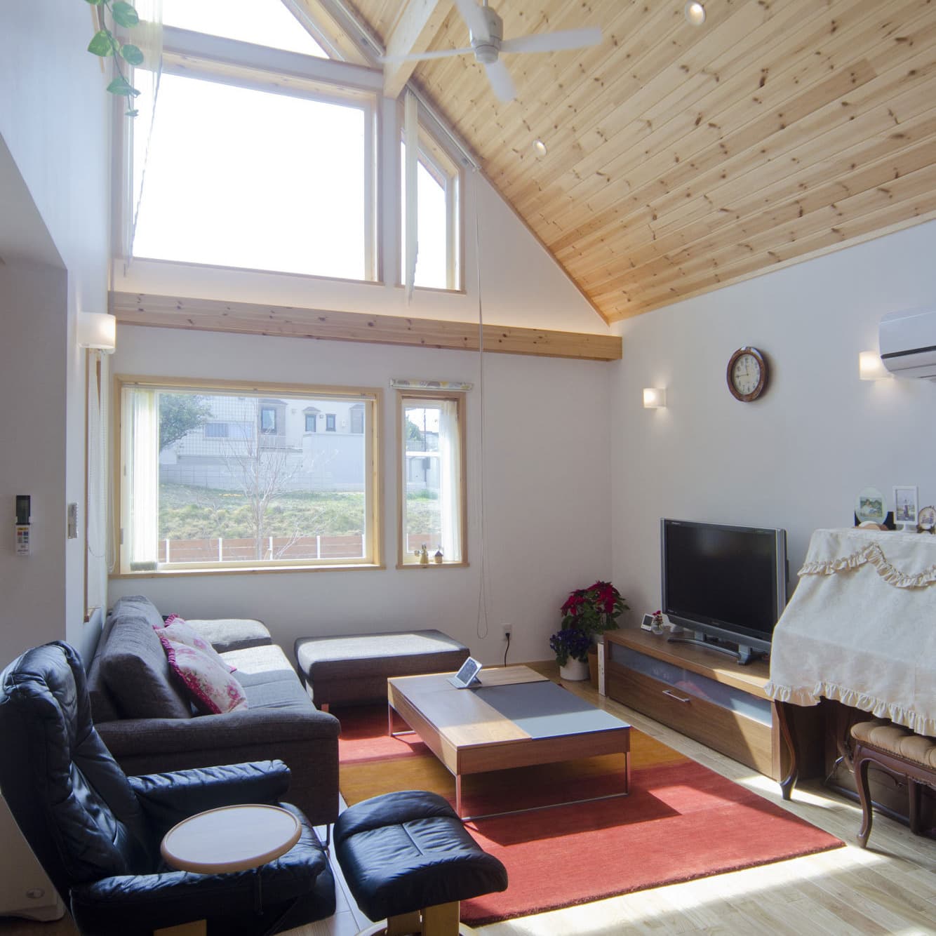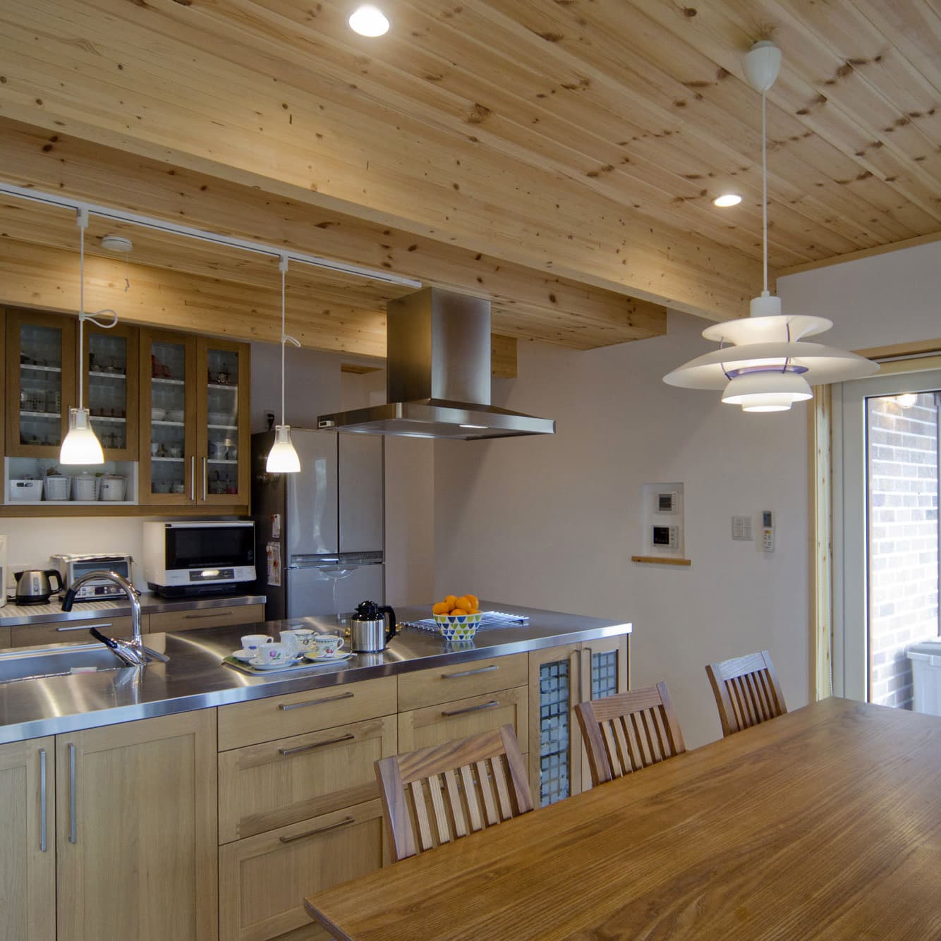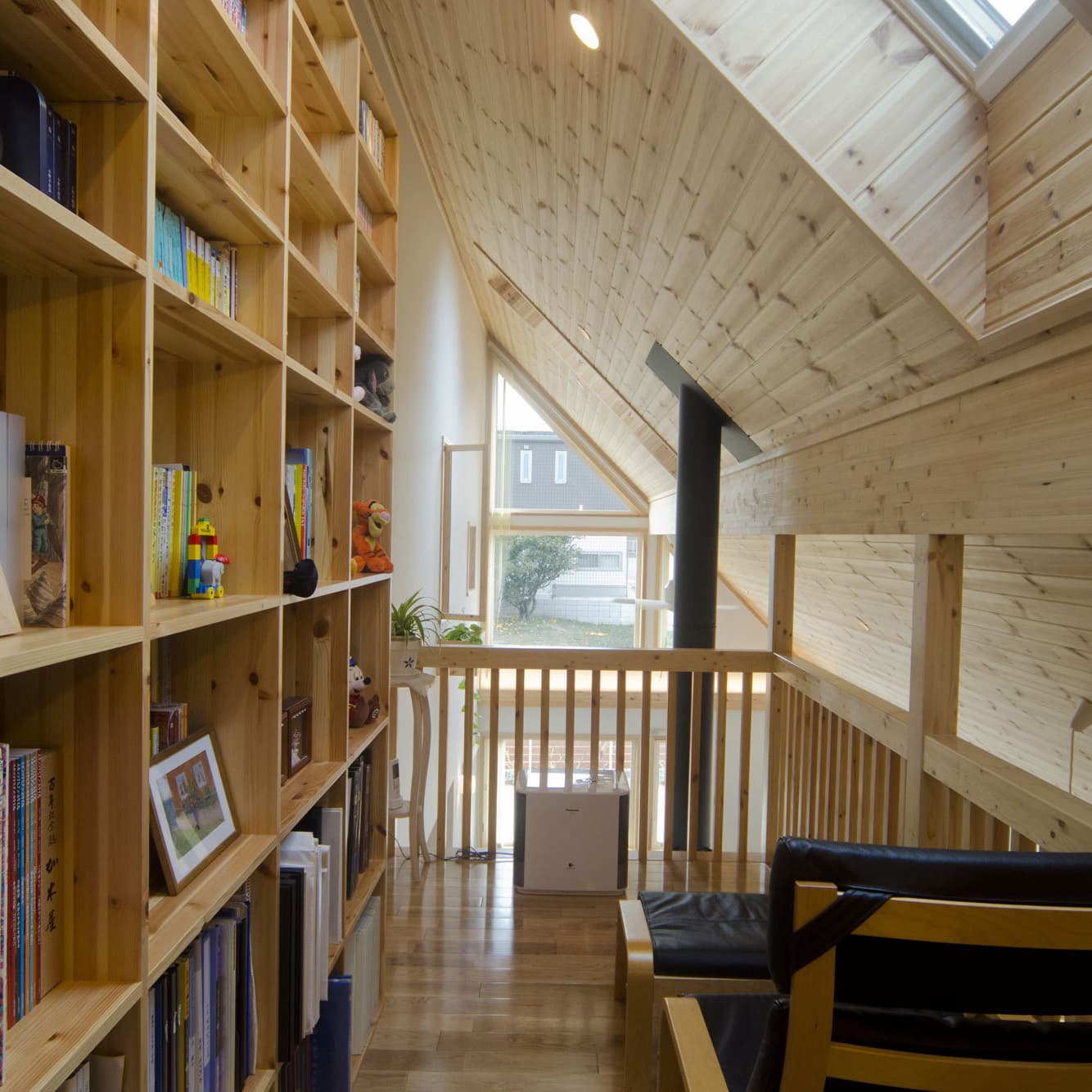 6つの寝室を持つ大型住宅です。基本計画をつくるにあたり、寝室のボリュームが大きい場合は明確にゾーニングします。リビングゾーンは玄関とLDK、キッチンと玄関の収納室です。寝室ゾーンは寝室とトイレを含むバスルーム、そしてクローゼットです。この家の場合は、左の急勾配屋根の部分がリビングゾーン、右の緩勾配屋根の部分が寝室ゾーンです。リビングゾーンは大胆に、寝室ゾーンは落ち着きが感じられるような空間に設計してあります。玄関>リビング>寝室といった流れで繋いであります。