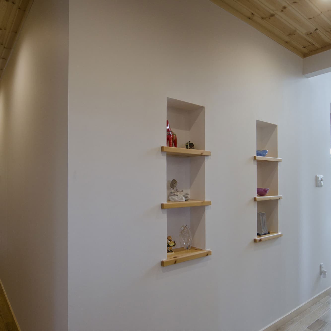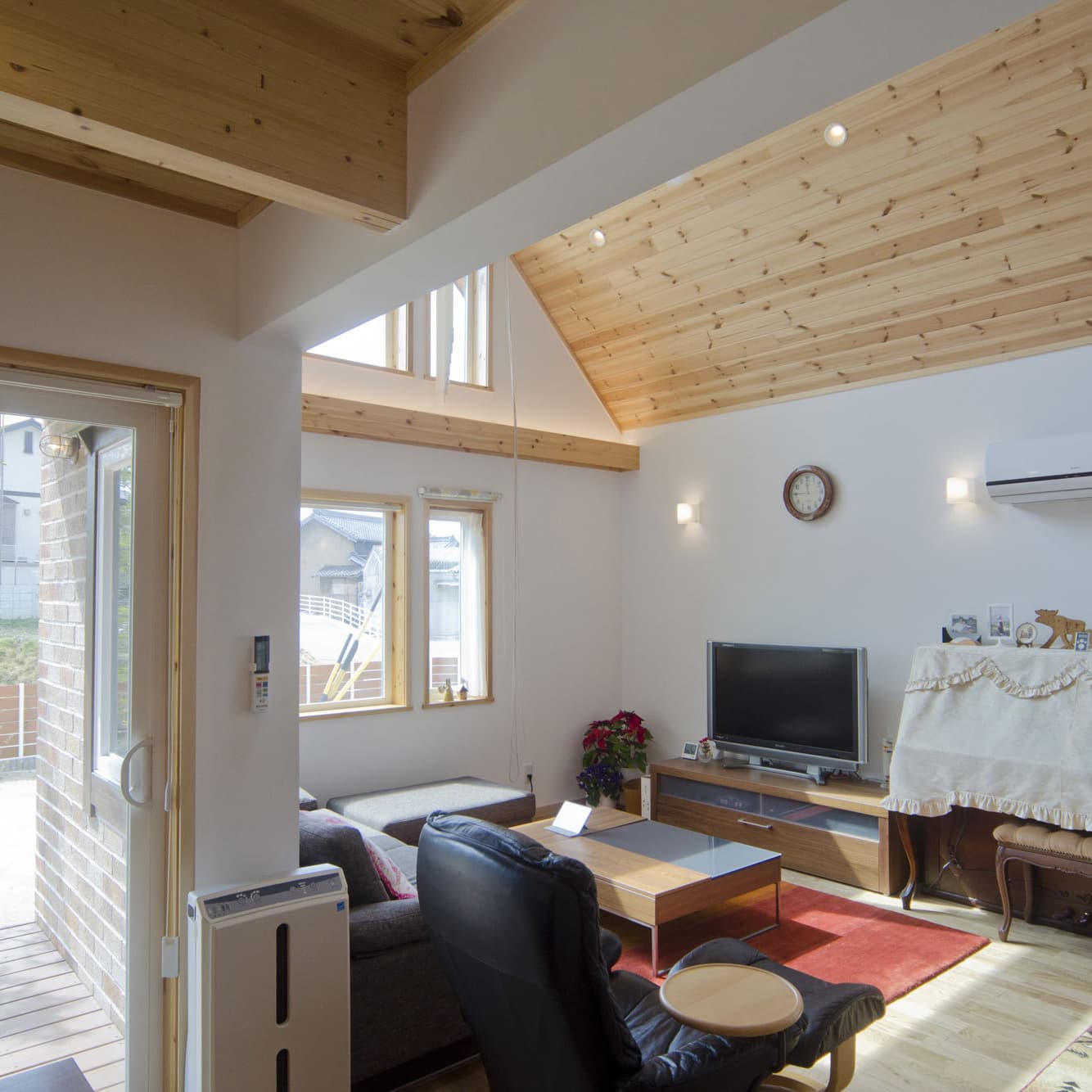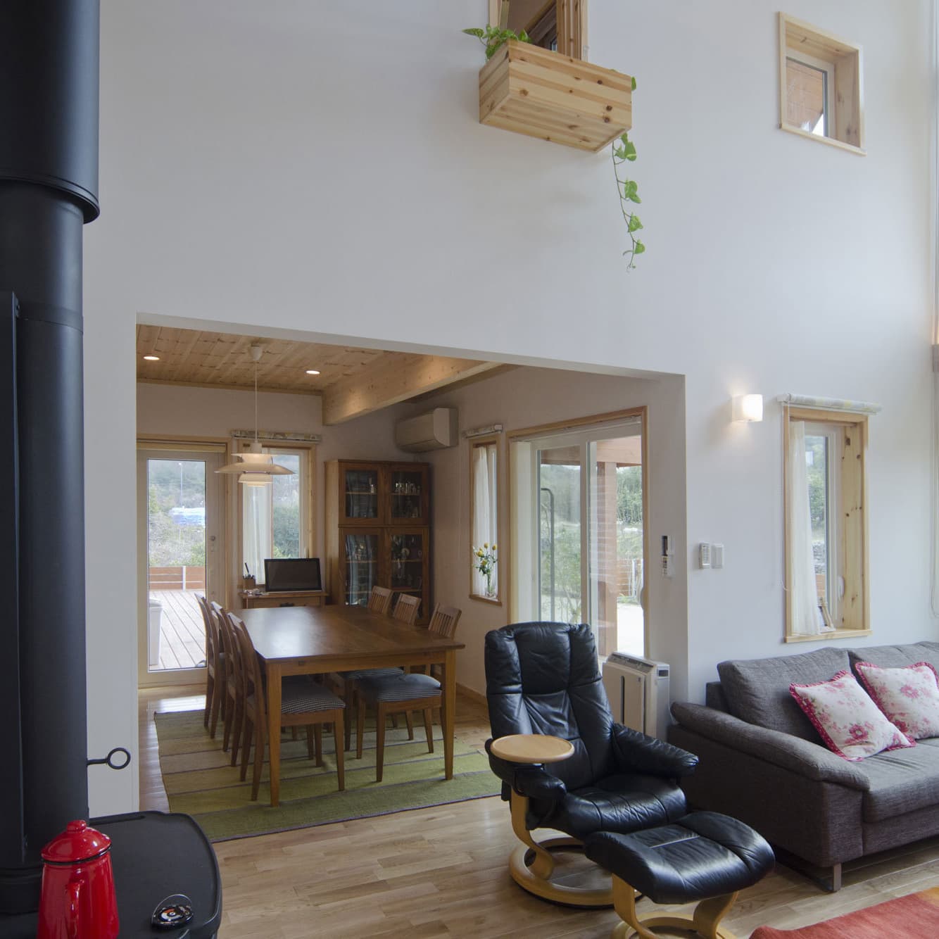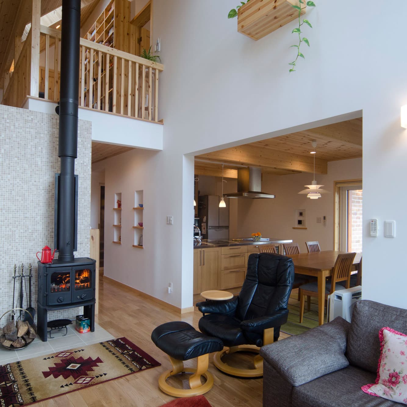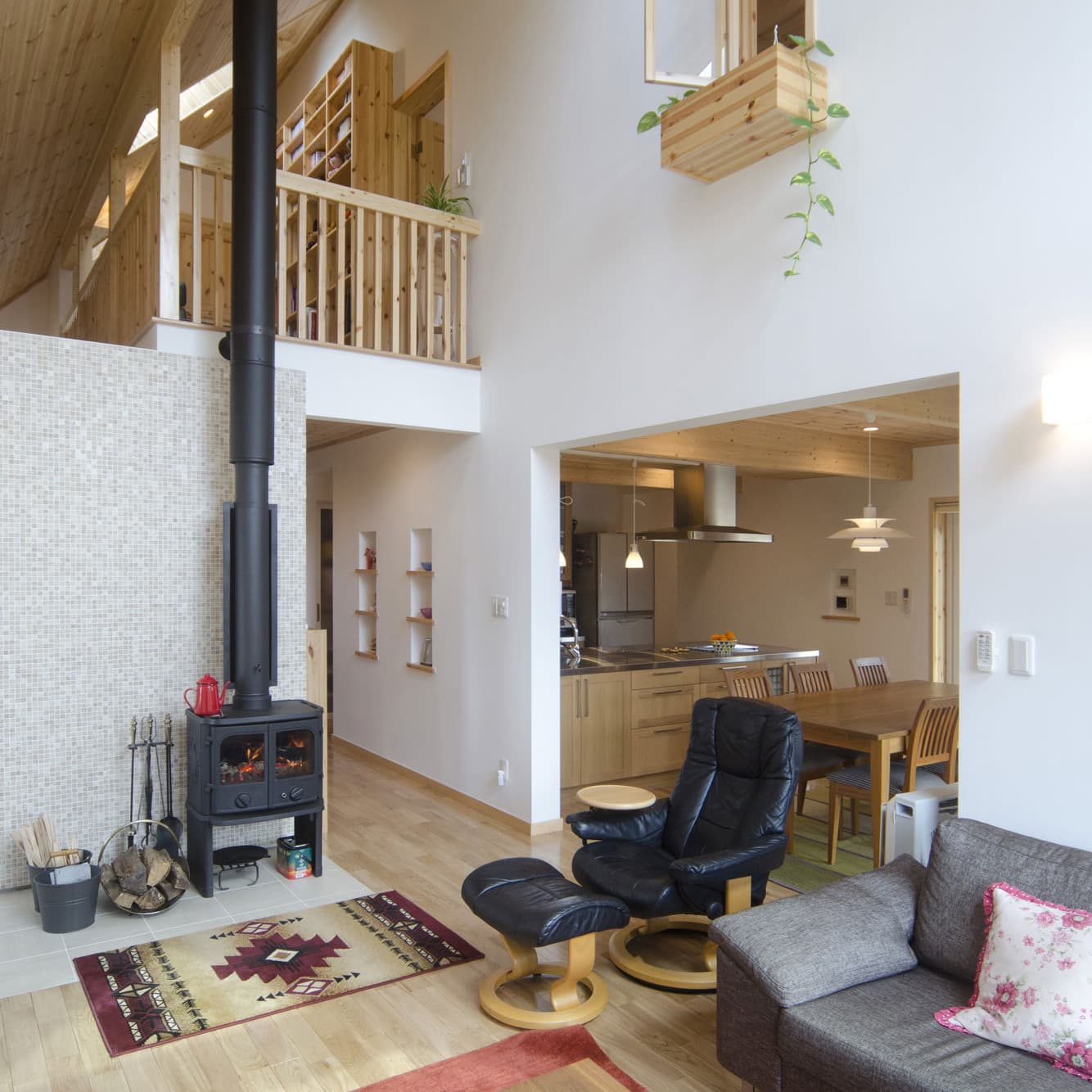 6つの寝室を持つ大型住宅です。基本計画をつくるにあたり、寝室のボリュームが大きい場合は明確にゾーニングします。リビングゾーンは玄関とLDK、キッチンと玄関の収納室です。寝室ゾーンは寝室とトイレを含むバスルーム、そしてクローゼットです。この家の場合は、左の急勾配屋根の部分がリビングゾーン、右の緩勾配屋根の部分が寝室ゾーンです。リビングゾーンは大胆に、寝室ゾーンは落ち着きが感じられるような空間に設計してあります。玄関>リビング>寝室といった流れで繋いであります。